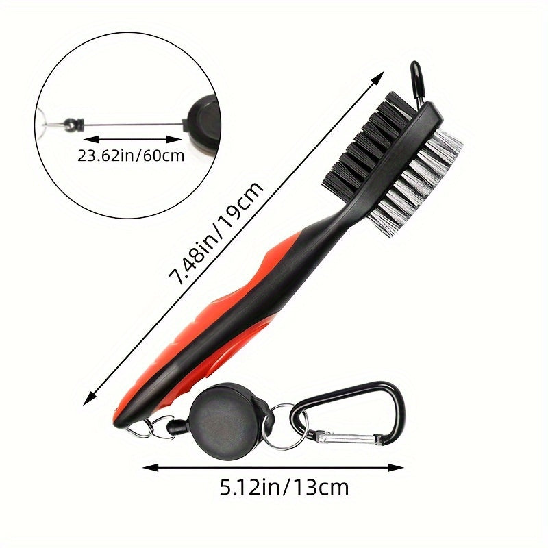 Golf Club Brush and Club Groove Cleaner with 2 Ft Retractable Zip-line Aluminum Carabiner