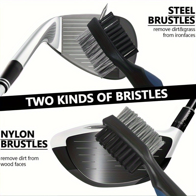 【EFFICIENT CLEANING DESIGN】Our golf brush and grooves cleaner contains 1 brushes, nylon bristles to remove dust or weeds from the surface of the golf club, metal bristles to remove soil from the surface of the golf club, and pointy tines to deep clean the grooves and golf shoes, saving you and your family time and money by eliminating the need for other tools to clean the clubs